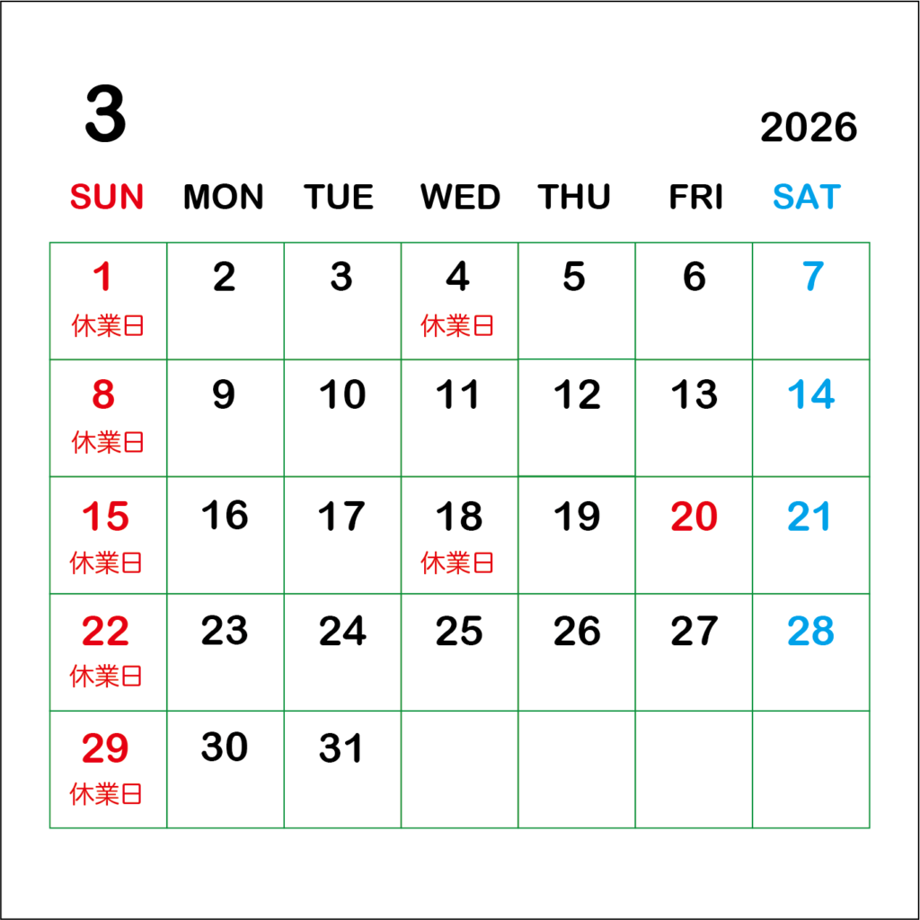 3月休業日のお知らせ